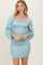 Light Blue Satin Smocked Bubble Sleeve Mini Dress