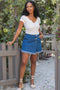 A solid side ruched maternity dress that includes short sleeves, round neckline, and side slit.