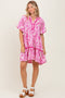 A soft knit maternity tennis romper dress. Features a scoop neckline, a racerback with a cutout, removable cups, an elastic band under the bust, and side pockets on the shorts.