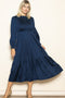 Light Gold Embroidered Tulle Dolman V-Neck Midi Dress