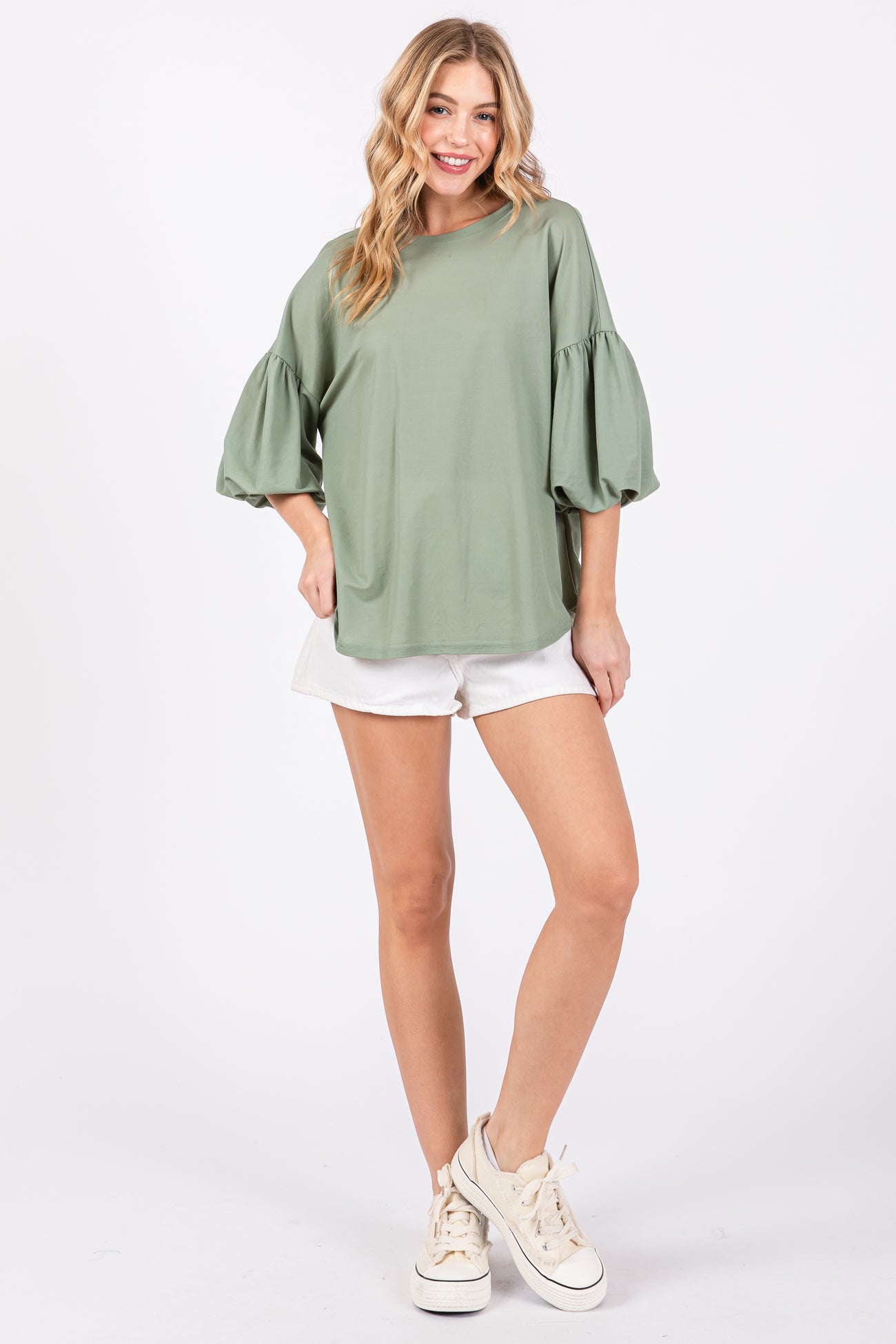 Light Olive Drop Shoulder Puff Sleeve Top