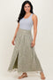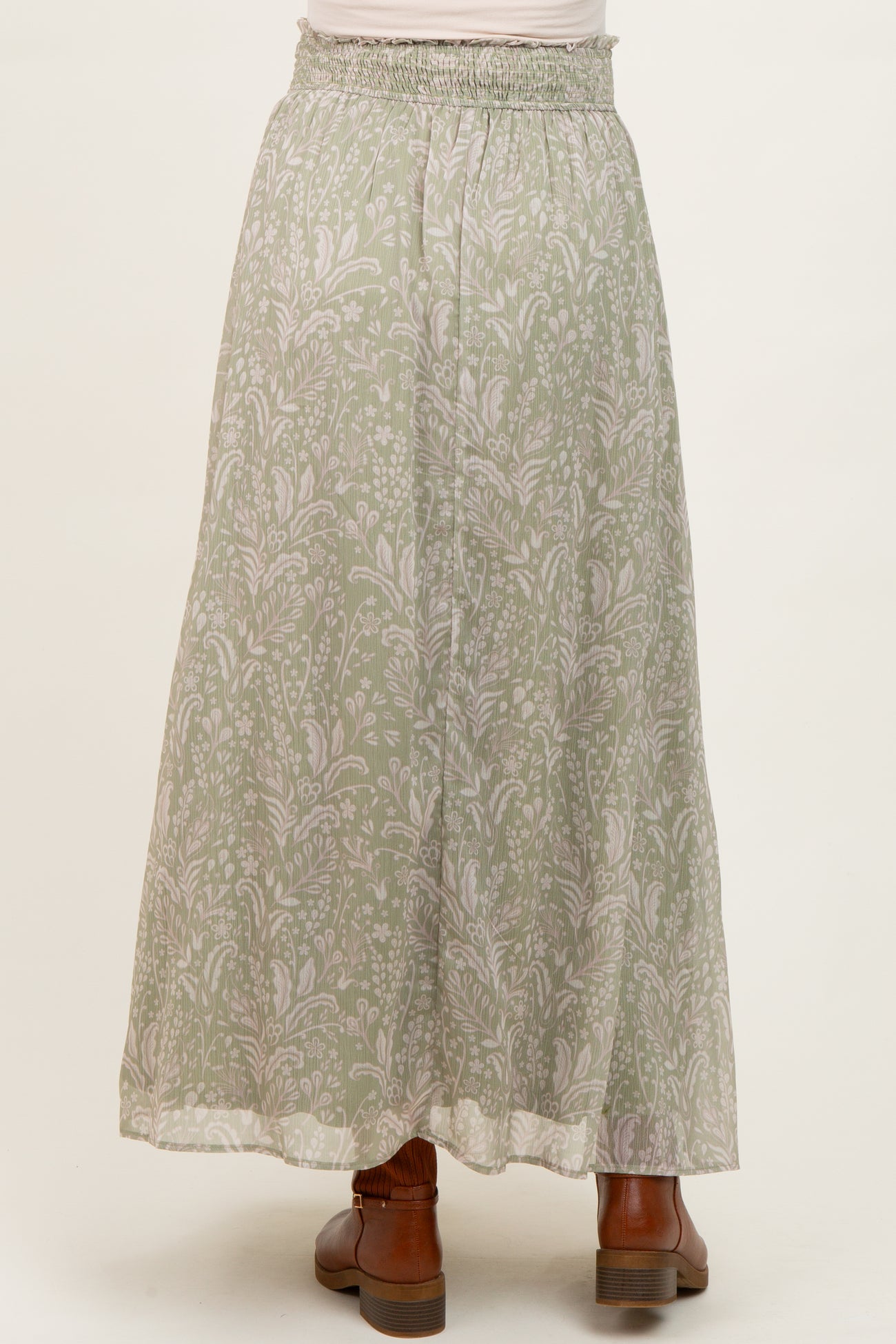 Light Olive Floral Chiffon Button Detail Maternity Maxi Skirt