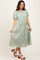 Light Olive Floral Embroidered Tied Waist Midi Dress