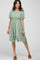A floral dress featuring a smocked top, short sleeves, a ruffle hem, a rounded neckline and a back keyhole cutout with a self-tie closure.