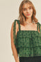 A solid knit maternity romper featuring a rounded neckline and knotted straps.