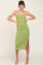 Light Olive Ribbed Knit Side Slit Midi Dress