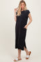 Light Olive Ribbed Short Sleeve Front Pocket Midi Dress