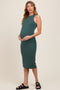 Light Olive Shimmer Mesh Long Sleeve Ruched Maternity Midi Dress