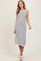 Light Olive Striped Knit Sleeveless Ruffle Hem Midi Dress