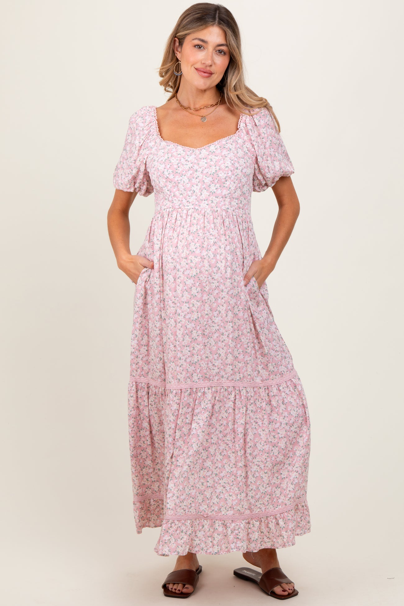 Light Pink Floral Sweetheart Maternity Maxi Dress