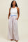 Elevate your casual wardrobe with these Light Pink Striped Drawstring Wide Leg Pants. Featuring a breezy wide-leg silhouette, these pants offer effortless comfort and style. The soft light pink fabric is adorned with subtle vertical stripes that elongate your legs and add a chic touch. The contrasting blue and white striped drawstring waistband not only provides a customizable fit but also adds a playful detail. Crafted from lightweight, breathable material, they’re perfect for warm days or relaxed evenings. Pair with a fitted tank or blouse and sandals for an easy, trendy look that moves with you. Stylish comfort made simple!