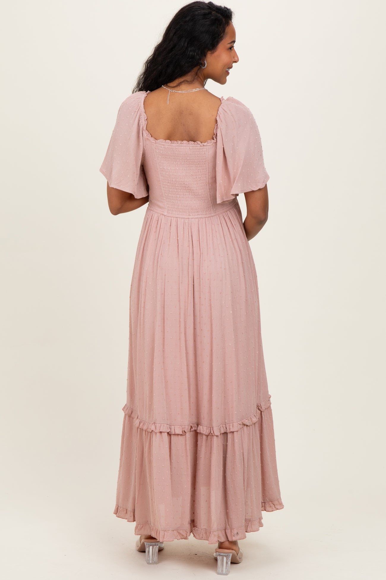 Light Pink Swiss Dot Ruffle Trim Maternity Maxi Dress