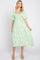 A floral print midi dress with puff sleeves, square neckline, smocked bodice and ruffle accents. Skirt is double lined.