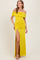 Lime Foldover Off Shoulder Ruched High Slit Maxi Dress