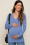 A thick rib knit maternity dress with double straps and a straight neckline.
