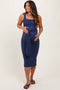 Lime Ribbed Front Tie Sleeveless Maternity Midi Dress