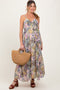 Magenta Brushstroke Print Tiered Maxi Dress