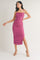 Magenta Floral Lace Ruched Cross Back Midi Dress