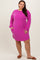 A rib knit plus size dress with a rounded neckline, long drop shoulder sleeves, side pockets, side slits, and a rounded hem.
