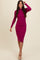 Magenta Ribbed Fitted Mock Neck Long Sleeve Midi Dress