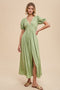 A sleeveless smocked dress featuring ruffle shoulder straps, side pockets, a ruffle hem and a square neckline.