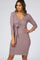 An ultra soft, brushed knit nursing fitted dress featuring a v-neckline with a wrap front and side tie detailing for easy access. Also features 3/4 length sleeves.