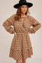 A plaid midi dress with adjustable straps, ruffle accent tiers and side pockets. Dress is lined.