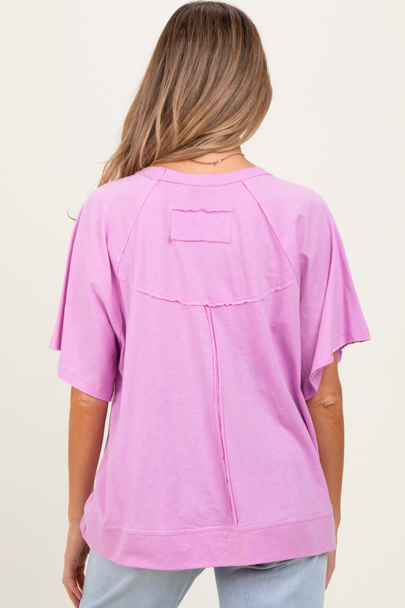 Mauve Oversized Raw Hem Short Sleeve Maternity Tee