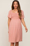 Mauve Printed Smocked Flutter Sleeve Dress