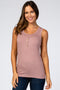 A solid ribbed sleeveless tank with button accent in front. Functional buttons.