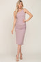 A solid sleeveless fitted maternity mini tank dress with ruching on both sides.