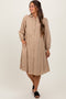 Mauve Striped Drawstring Hoodie Maternity Top