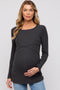 A solid brushed knit rib maternity long sleeve top with a layered crossover top for nursing access.