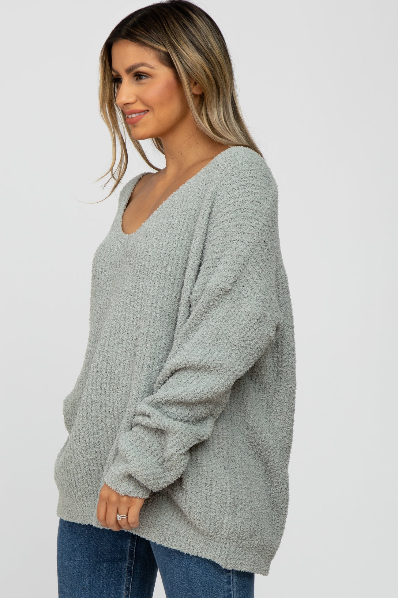 An ultra soft knit sweater featuring a v-neckline and long sleeves.