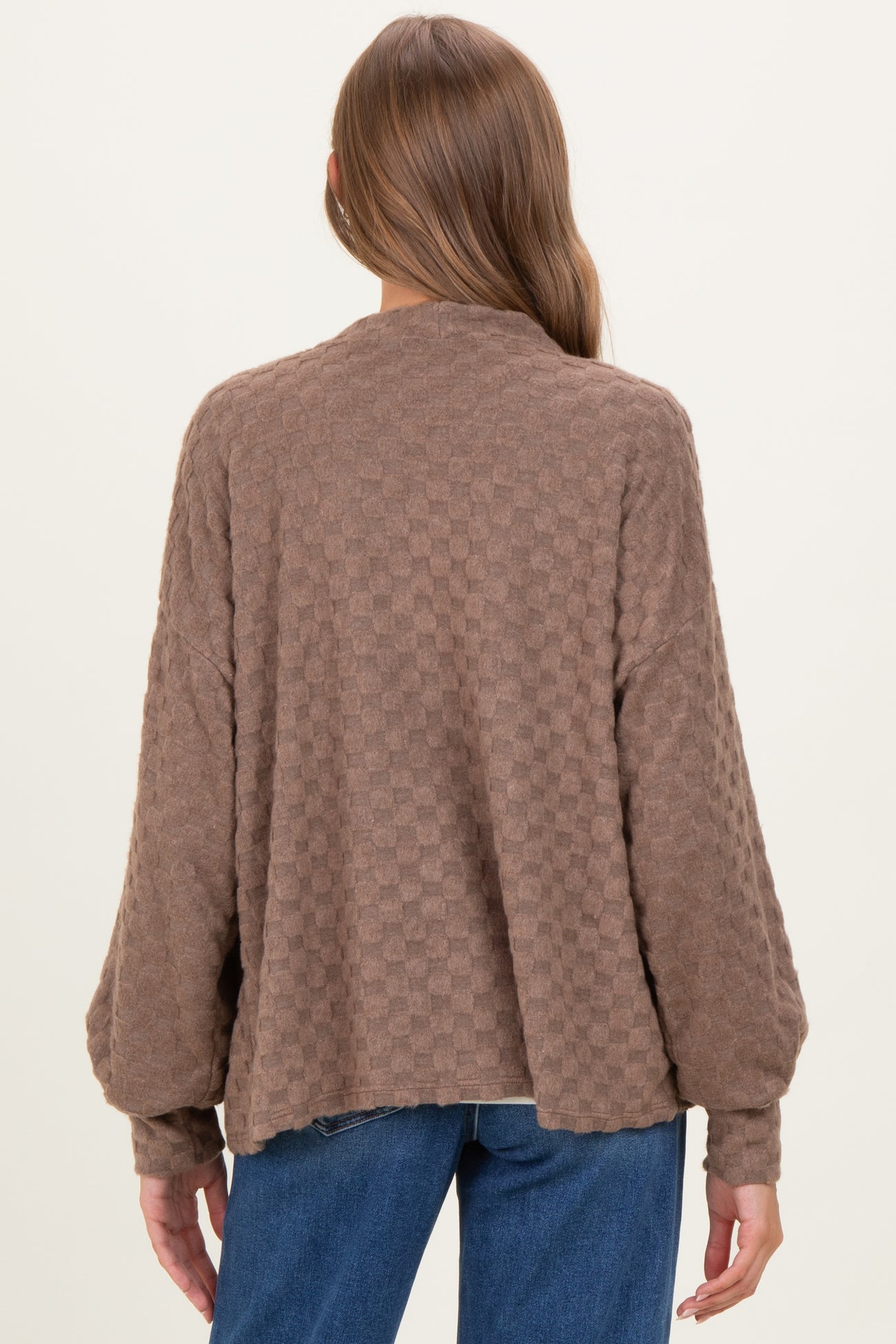 Mocha Checkered Knit Button Front Maternity Cardigan