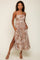 A floral print midi dress with adjustable straps, smocked back, and two side slits. Pocketed.