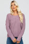 A solid knit maternity sweater featuring long balloon sleeves and a rounded neckline.
