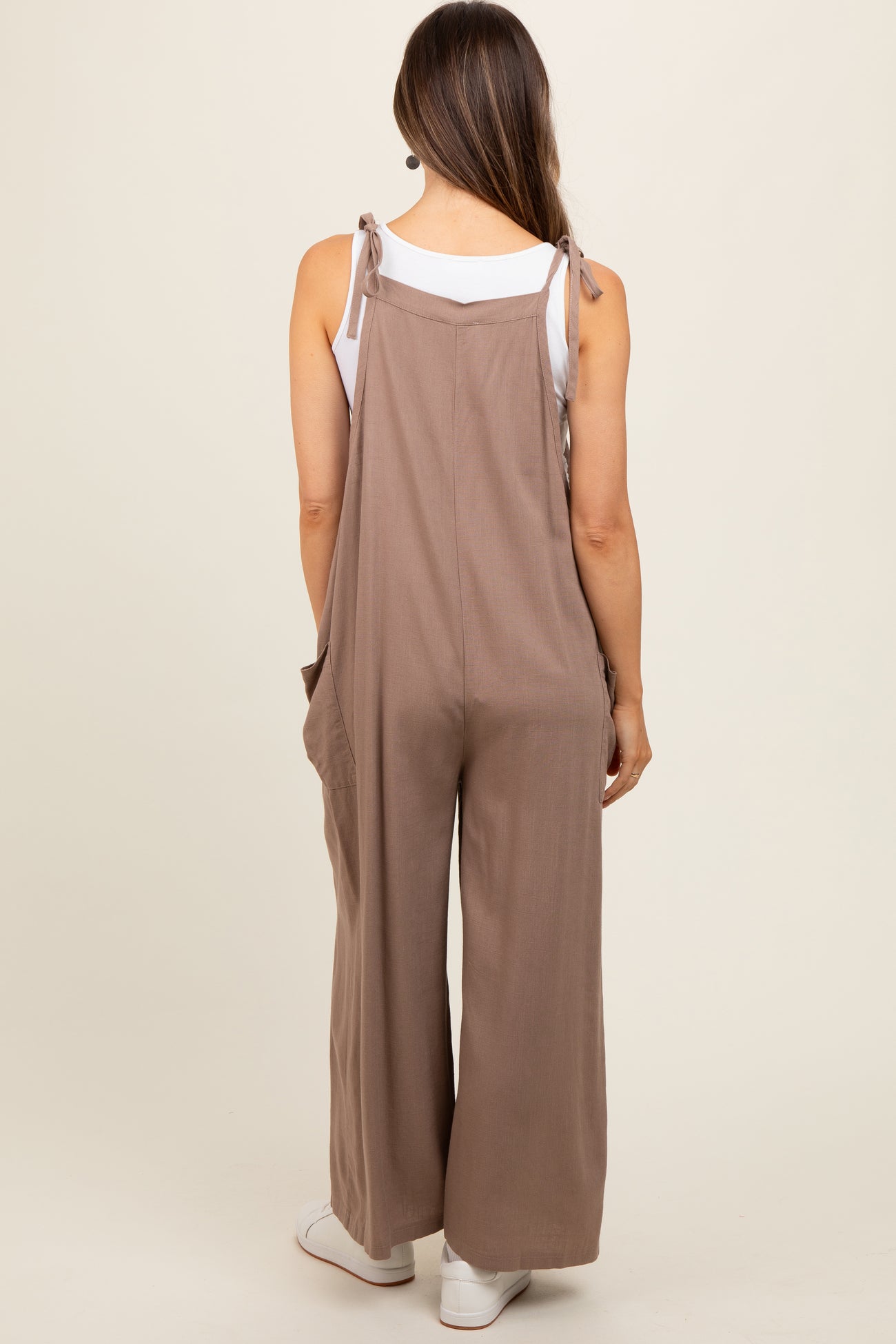 Mocha Linen Shoulder Tie Maternity Jumpsuit