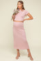 Elevate your maternity style with our Mocha Mesh Ruched Fitted Maternity Midi Dress. Crafted from soft, breathable mesh fabric, this dress features elegant ruching that beautifully accentuates your baby bump while providing a flattering silhouette. The fitted design and midi length offer a chic and sophisticated look perfect for special occasions or everyday wear. Adjustable spaghetti straps and a crossover neckline add feminine touches, ensuring comfort and style throughout your pregnancy. Pair with heels or sandals for a polished finish. Embrace effortless maternity elegance in this must-have dress!