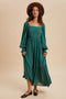 Embrace timeless elegance with our Mocha Pleated Bodice Long Sleeve Maxi Dress. Crafted in a rich mocha hue, this dress features a flattering pleated bodice and a square neckline that beautifully highlights your collarbone. The long, billowy sleeves with smocked cuffs add a romantic, vintage-inspired touch, while the flowing maxi skirt ensures graceful movement. Perfect for any occasion, this versatile dress pairs effortlessly with boots or heels. Made from lightweight, breathable fabric for all-day comfort. Elevate your wardrobe with this chic and sophisticated maxi dress.