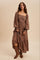 Mocha Pleated Bodice Long Sleeve Maxi Dress