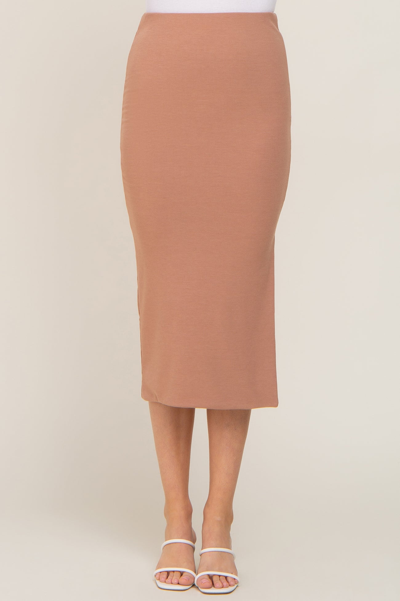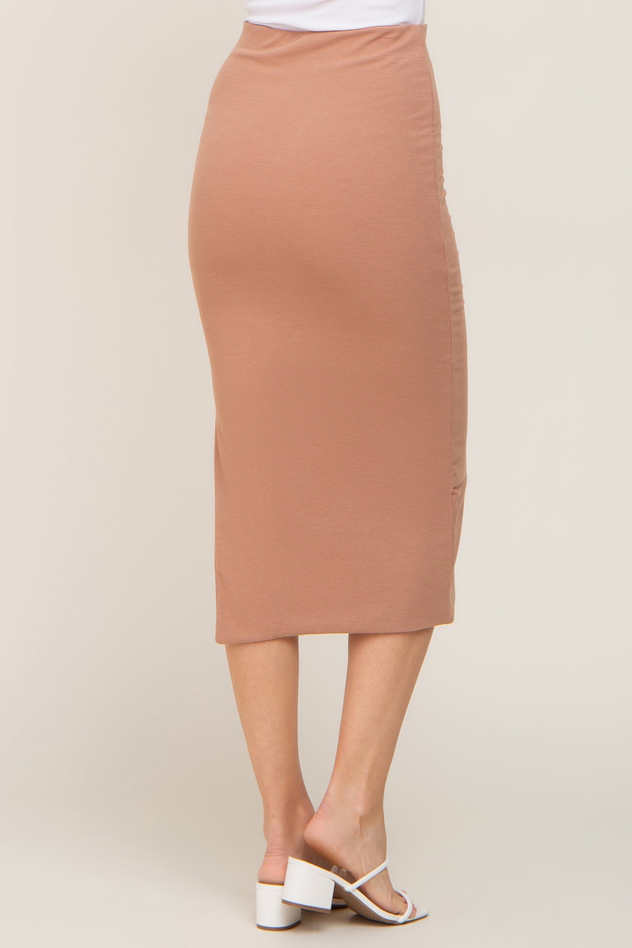 Mocha Ribbed Side Slit Midi Skirt