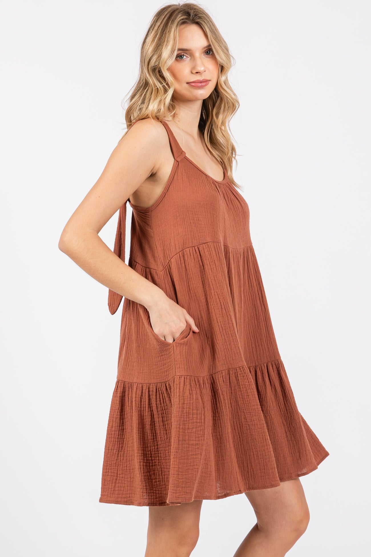 Mocha Sleeveless Tiered Ruffle Hem Dress