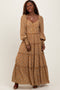 Mocha Smocked Floral Crochet Lace Trim Maxi Dress