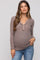 Mocha Soft Waffle Knit Button Accent Long Sleeve Maternity Top