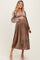 Mocha Velvet Smocked Long Sleeve Maternity Midi Dress