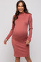 A color blocked maternity sweater featuring a turtleneck and long sleeves.