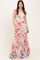 Multicolor Floral Ruched Mesh One Shoulder Maxi Dress