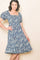 Navy Blue Floral Puff Sleeve Smocked Chest Dress