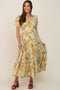 Navy Blue Floral Square Ruffle Neck Tiered Short Sleeve Dress